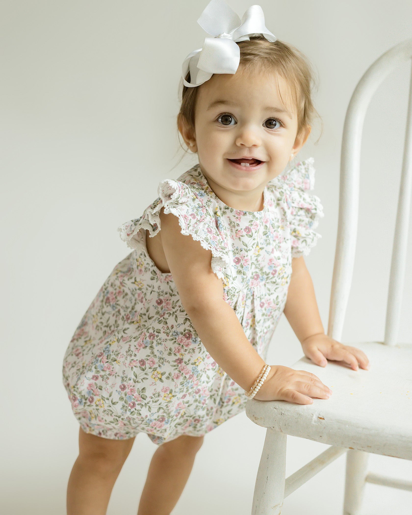 The Ana Bubble Romper is comfortable enough to move in and brings a perfectly elegant style to your events. The perfect ruffle sleeved baby girl outfit for all spring and summer occasions! At Cuclie, we design outfits that are as versatile as they are beautiful to wear.